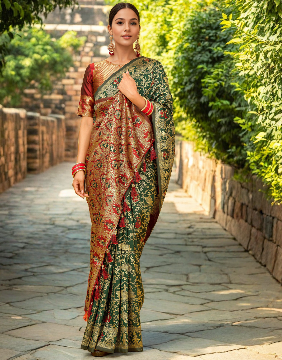 Amazing Green Color Silk Weaving Work Paithani Party Wear Saree