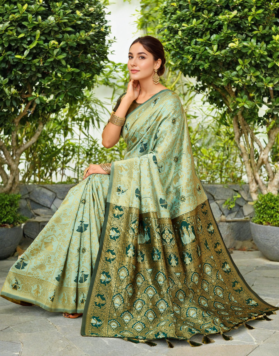 Amazing Mahendi Color Silk Weaving Work Paithani Party Wear Saree