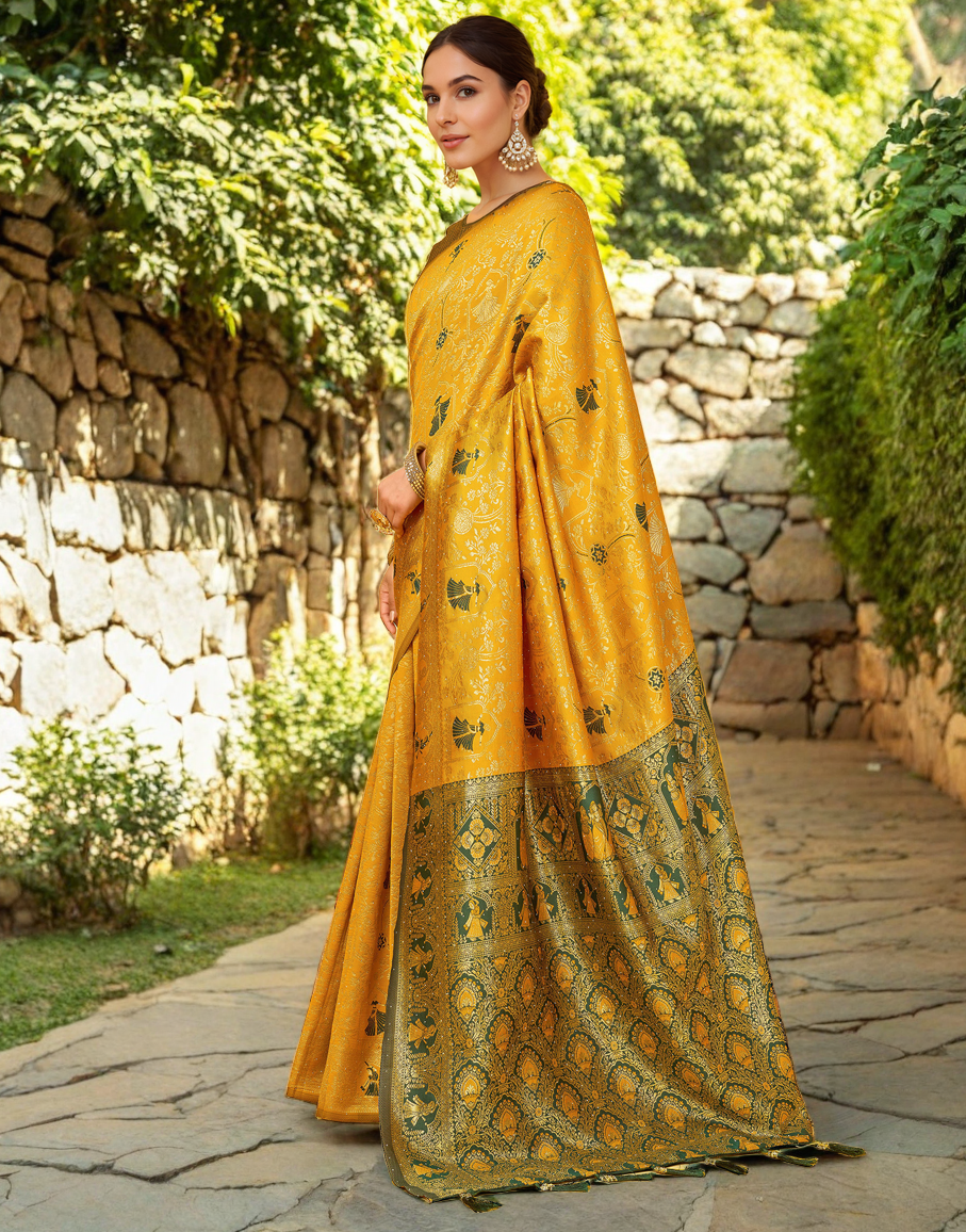 Amazing Musturd Color Silk Weaving Work Paithani Party Wear Saree