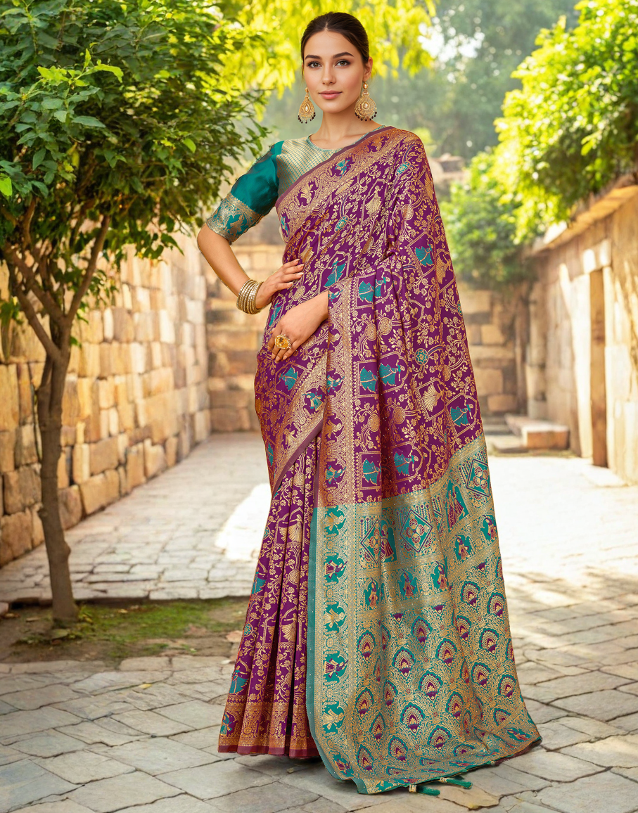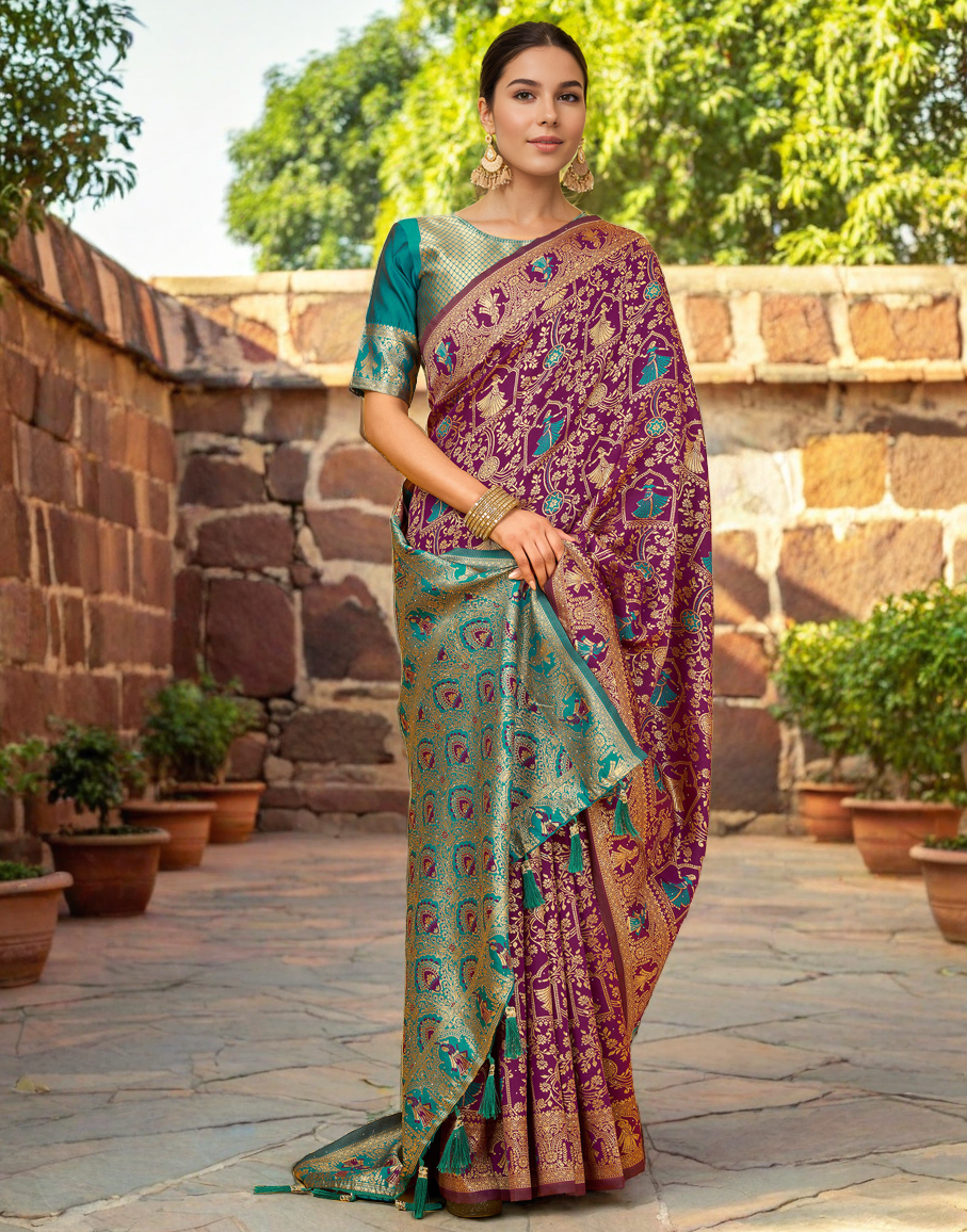 Amazing Purple Color Silk Weaving Work Paithani Party Wear Saree