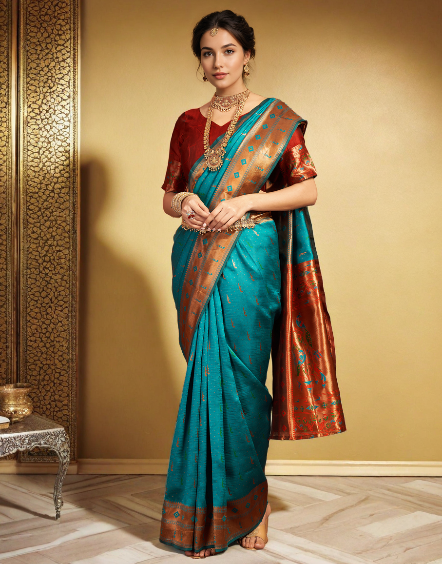 Amazing Rama Color Silk Woven Weaving Work Paithani Saree