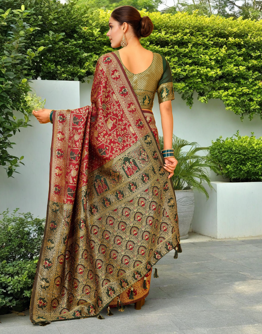 Amazing Red Color Silk Weaving Work Paithani Party Wear Saree