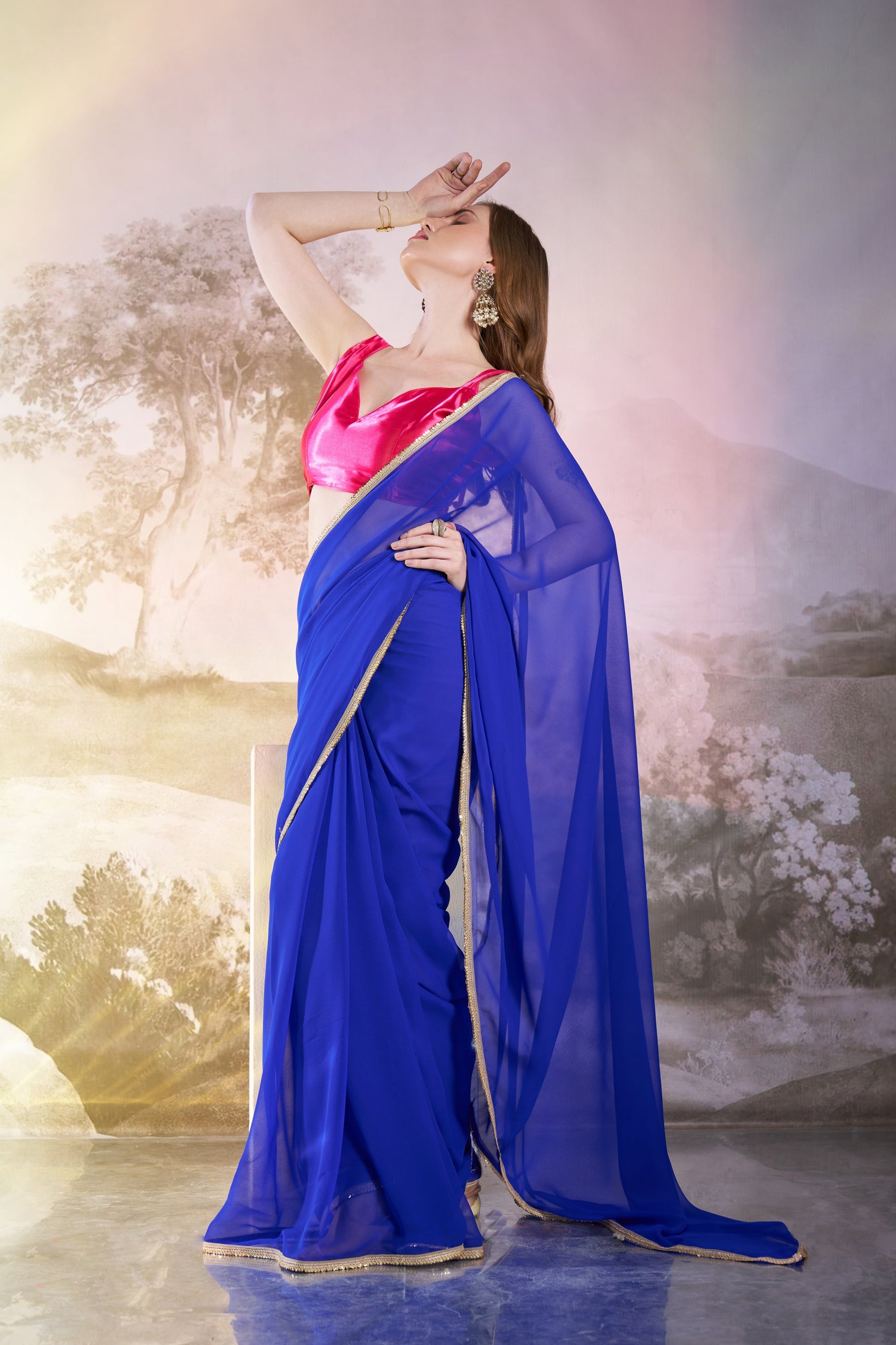 Blue Georgette Saree with Designer Lace – Party Wear Saree