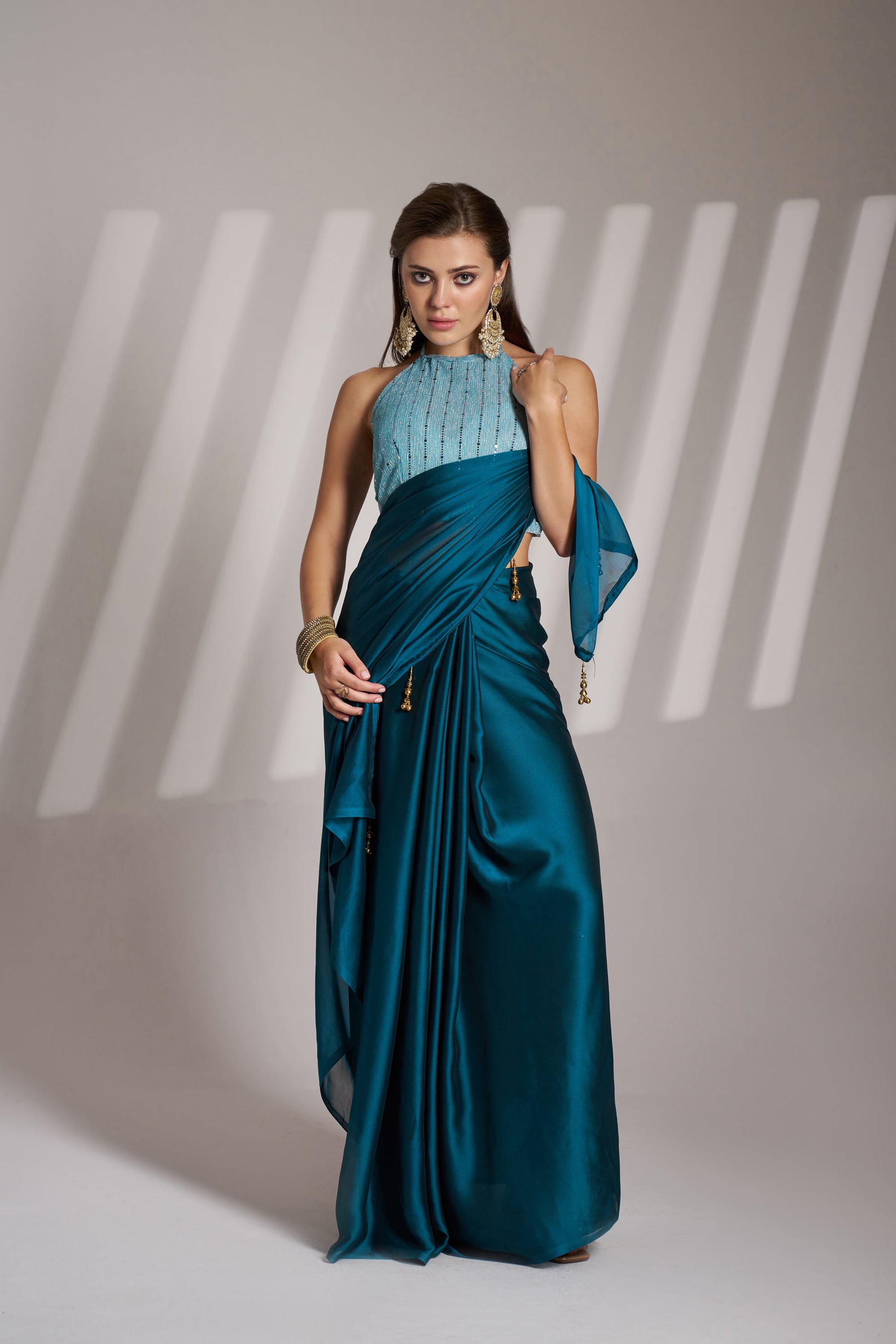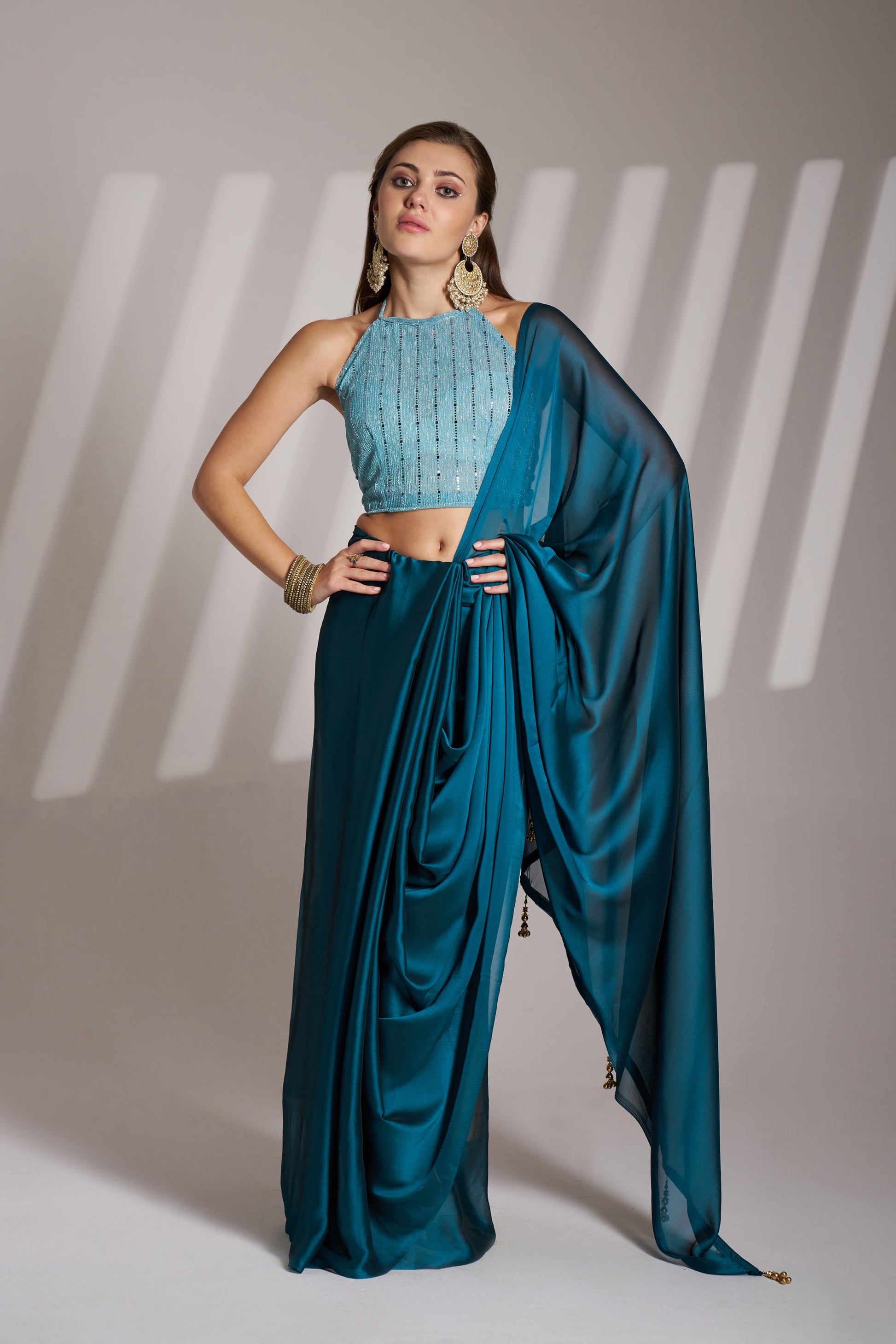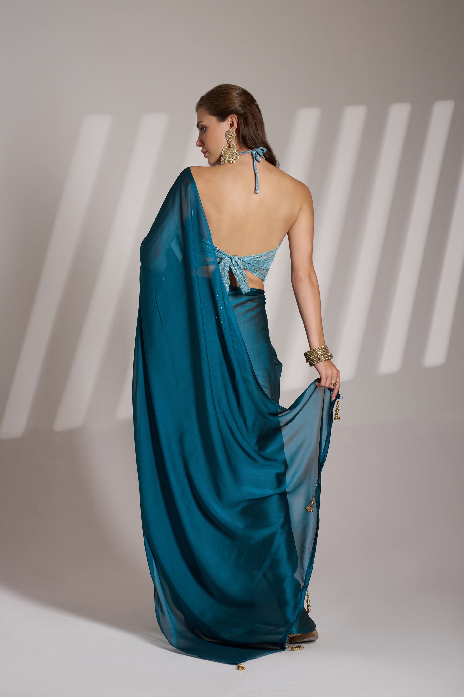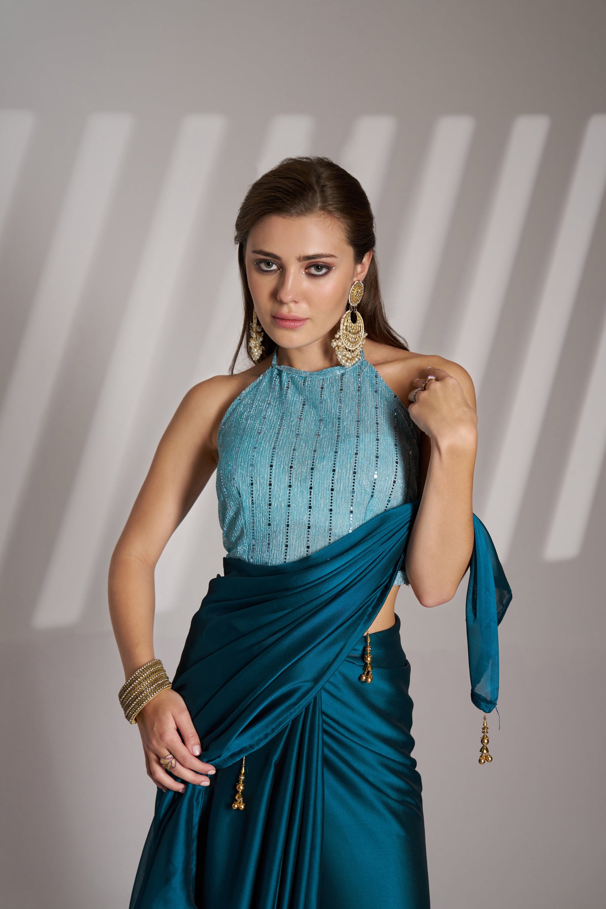 Blue Color Satin Rangoli Saree with Fancy Lace and Unstitched Blouse – Party & Festive Wear