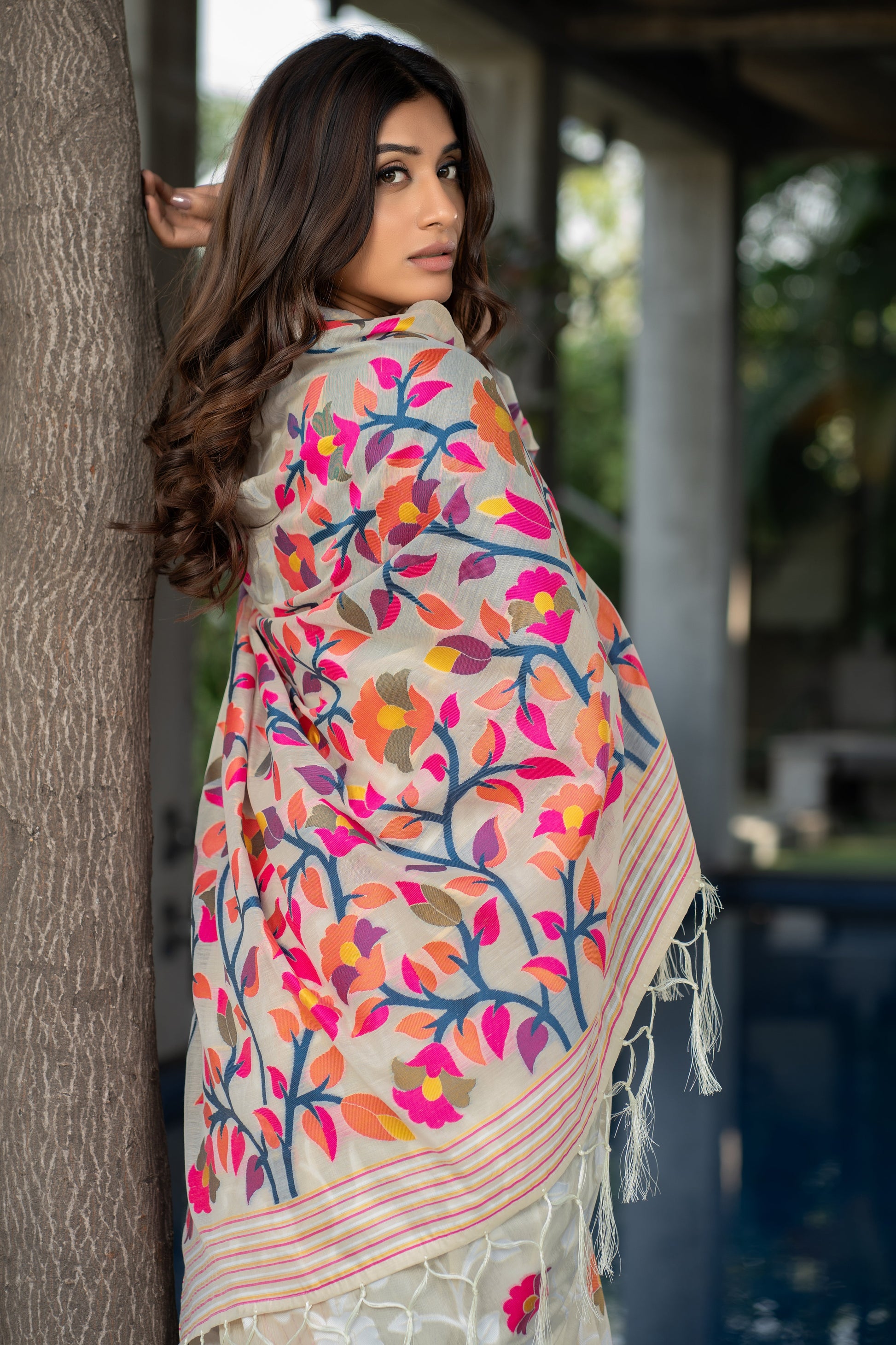 Claasic Ruhani Off White Color Cotton Jamdani Saree