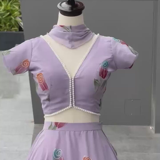 Designer Party Wear Lehenga Choli – Mauve Pure Organza | Anarkalion