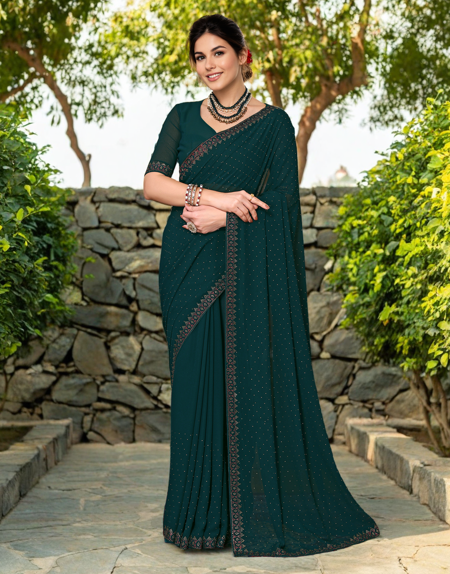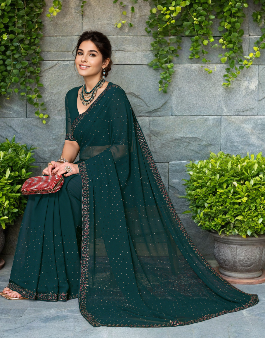 Green Color Rangoli Dimond Work Party Wear Saree