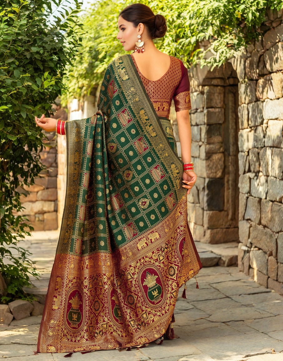 Green Color Silk Weaving Work Paithani Designer Saree