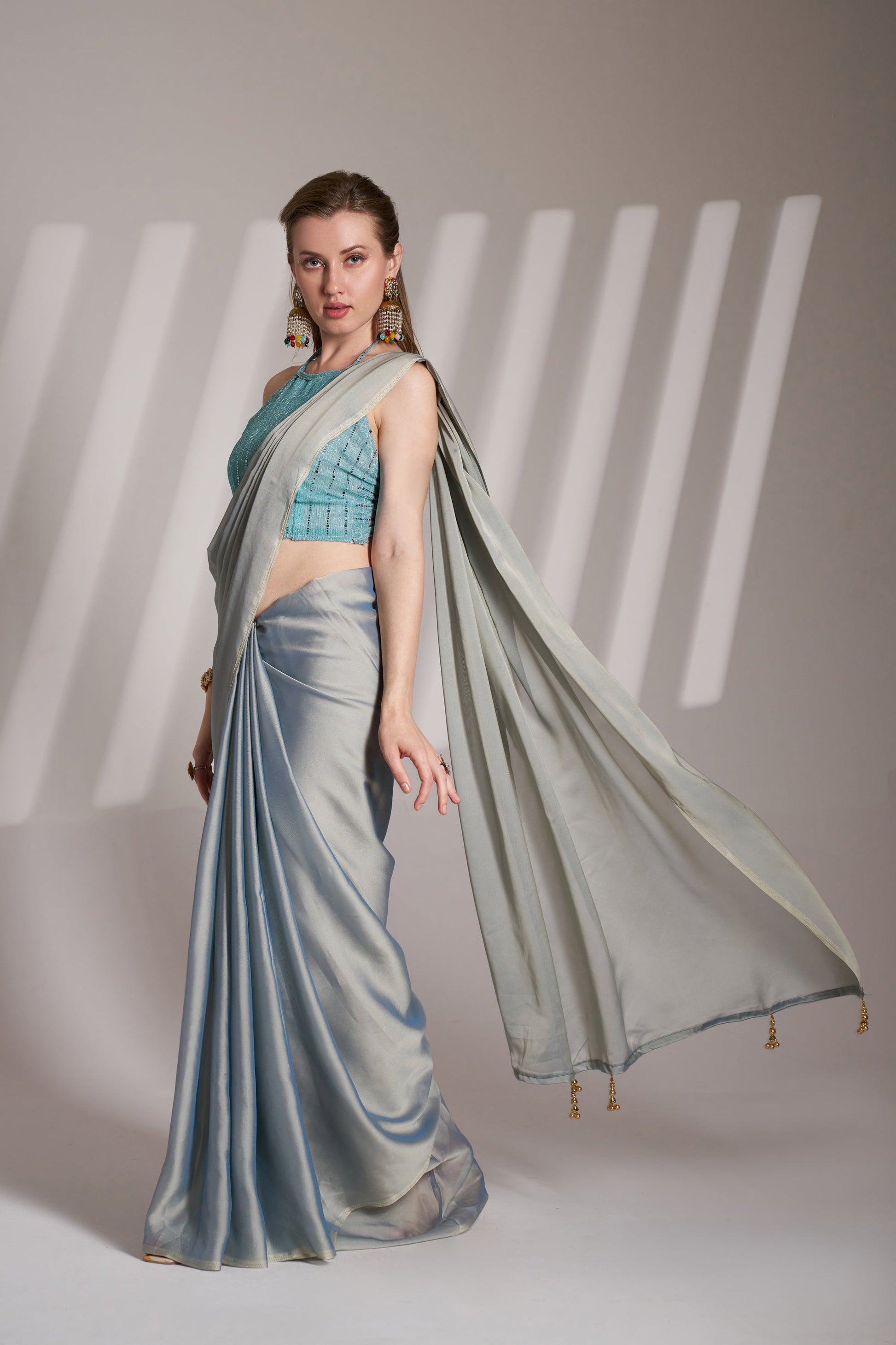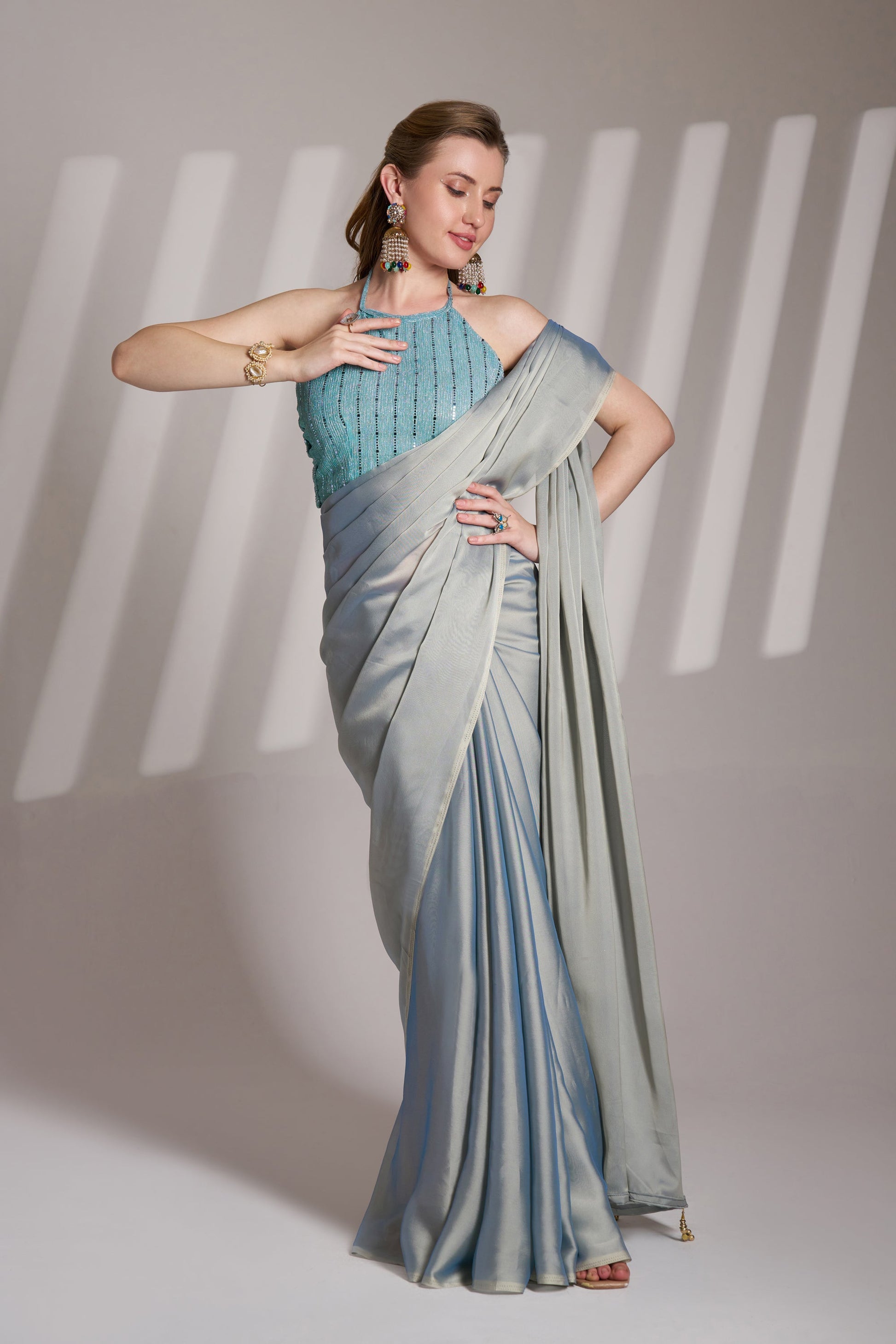 Grey Color Satin Rangoli Saree with Fancy Lace and Unstitched Blouse – Party & Festive Wear