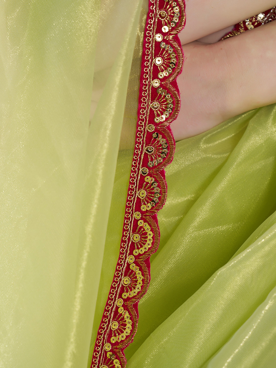 Lime yellow Color twill net saree with designer lace and unstitched blouse