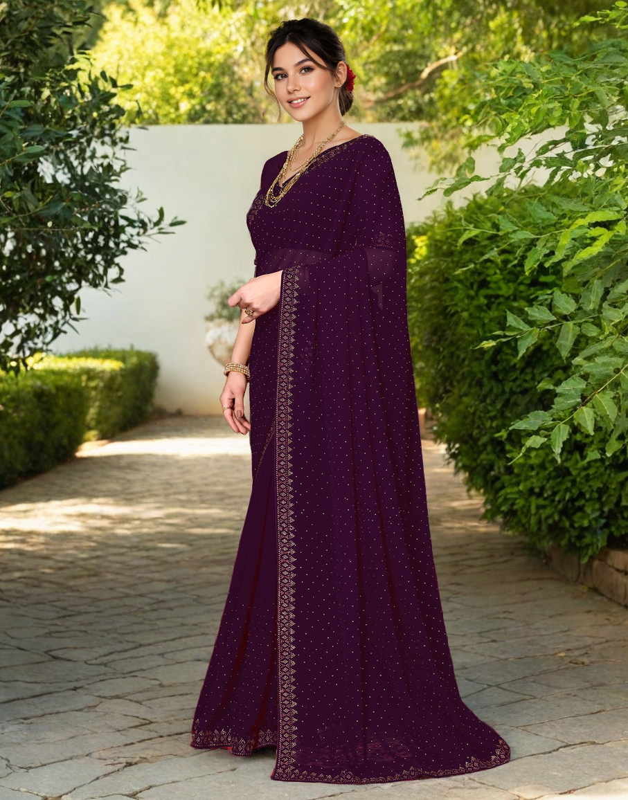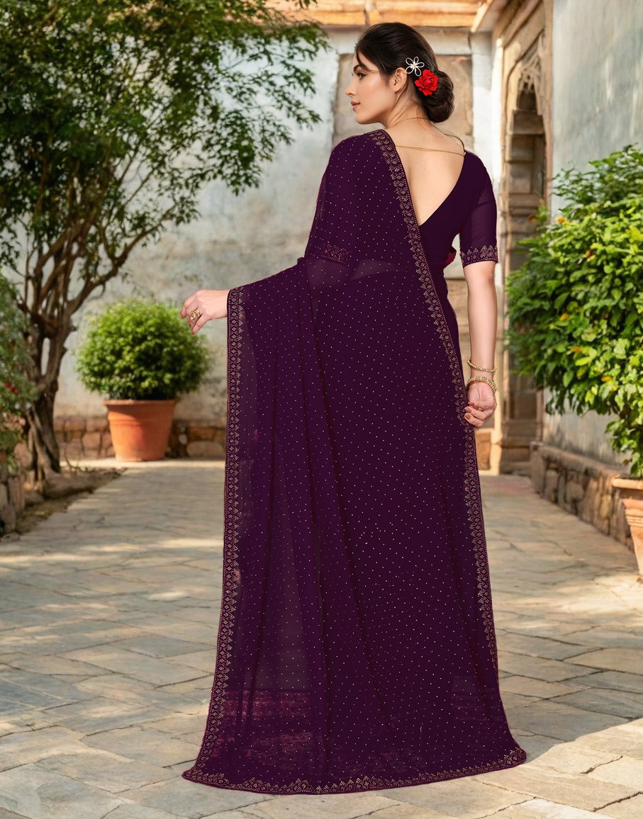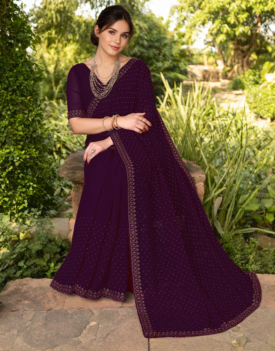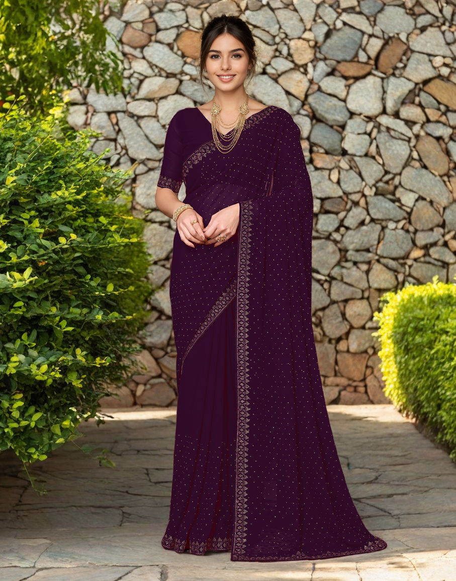 Magenta Color Rangoli Dimond Work Party Wear Saree