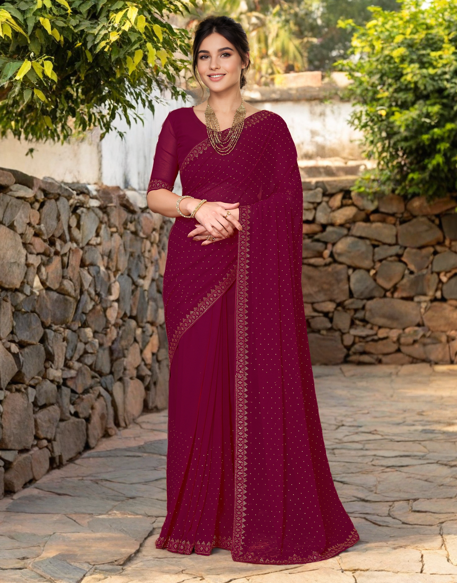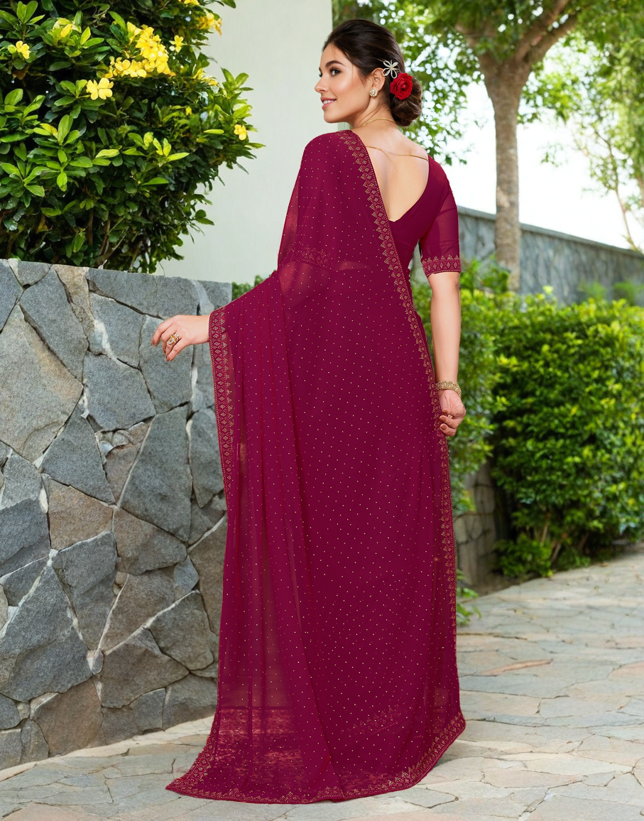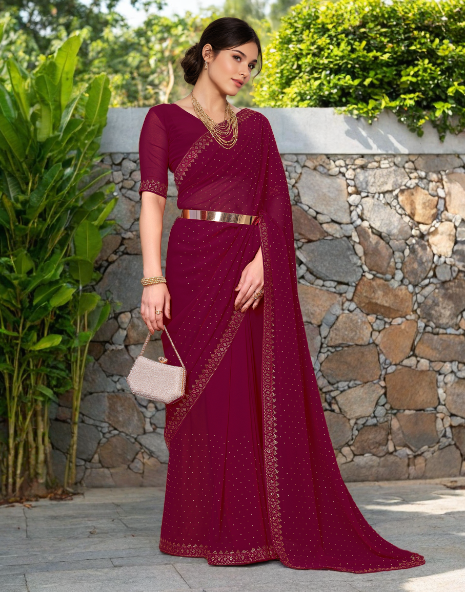 Maroon Color Rangoli Dimond Work Party Wear Saree