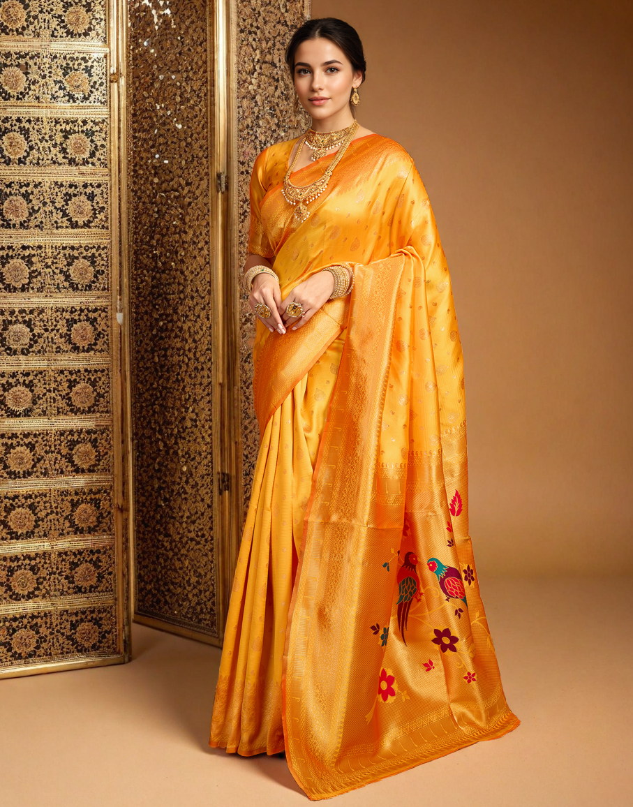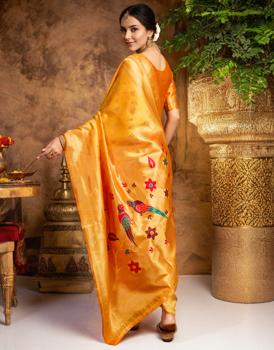 Musturd Color Silk Weaving Paithani Work Designer Saree