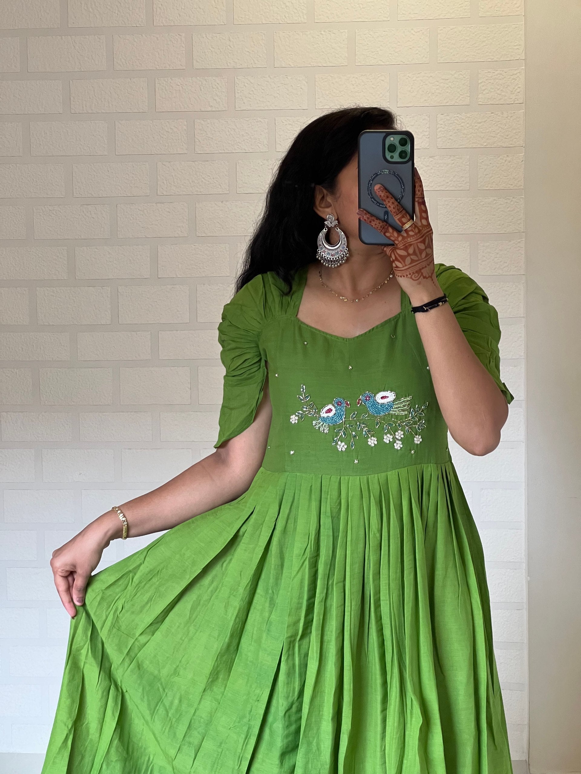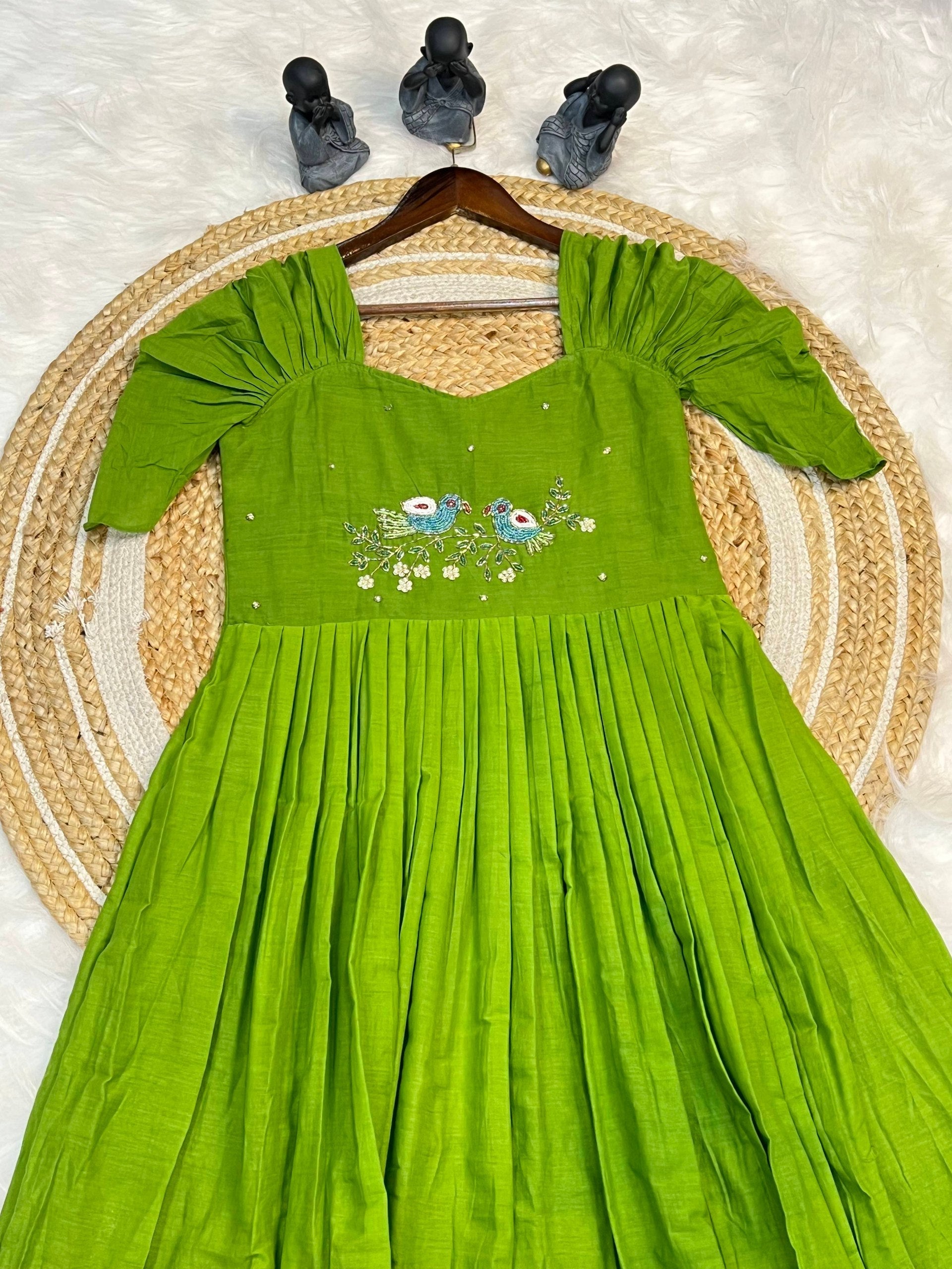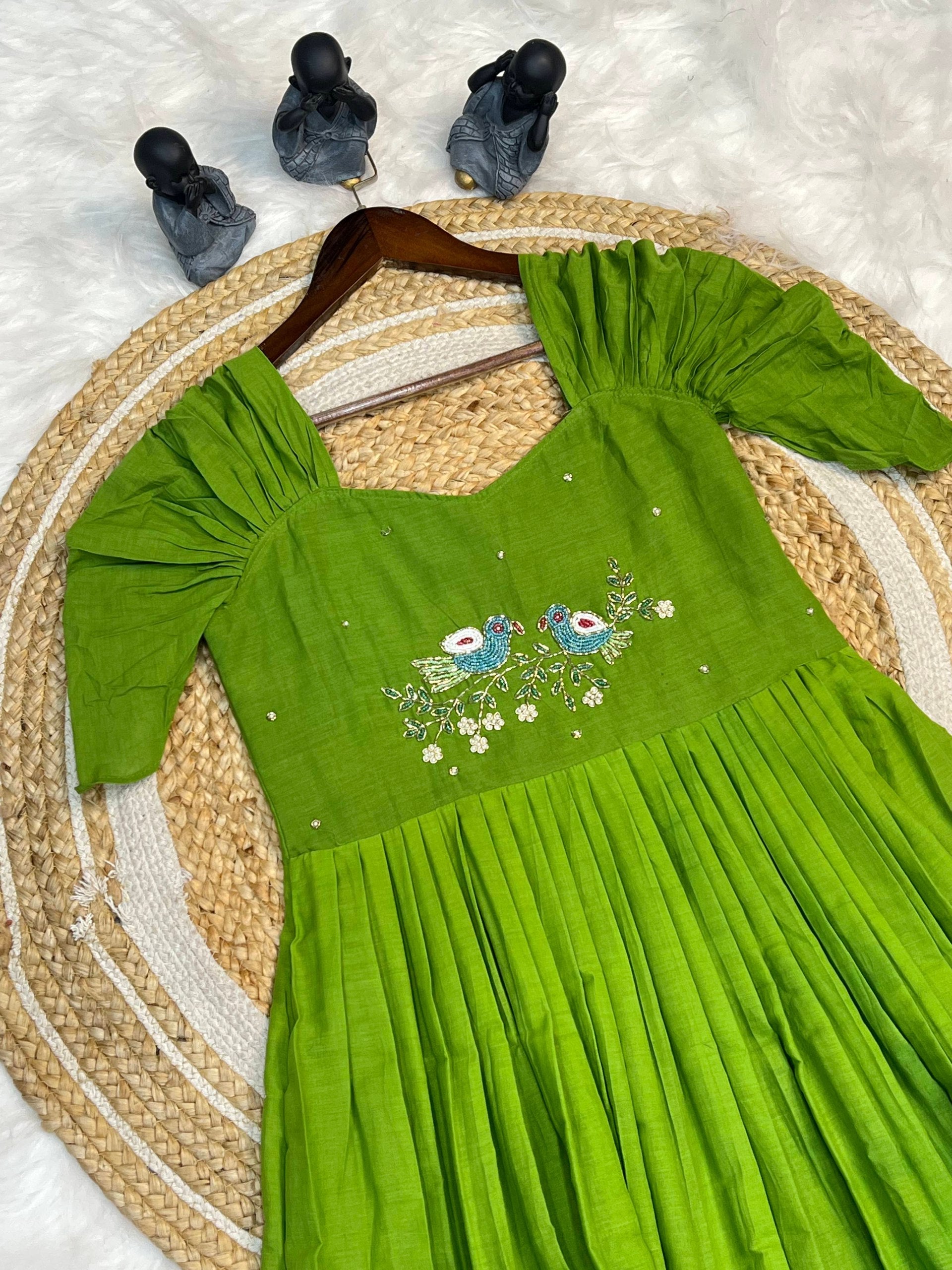 New Green Color Pure Mul Cotton Hand Maggam work Kurti