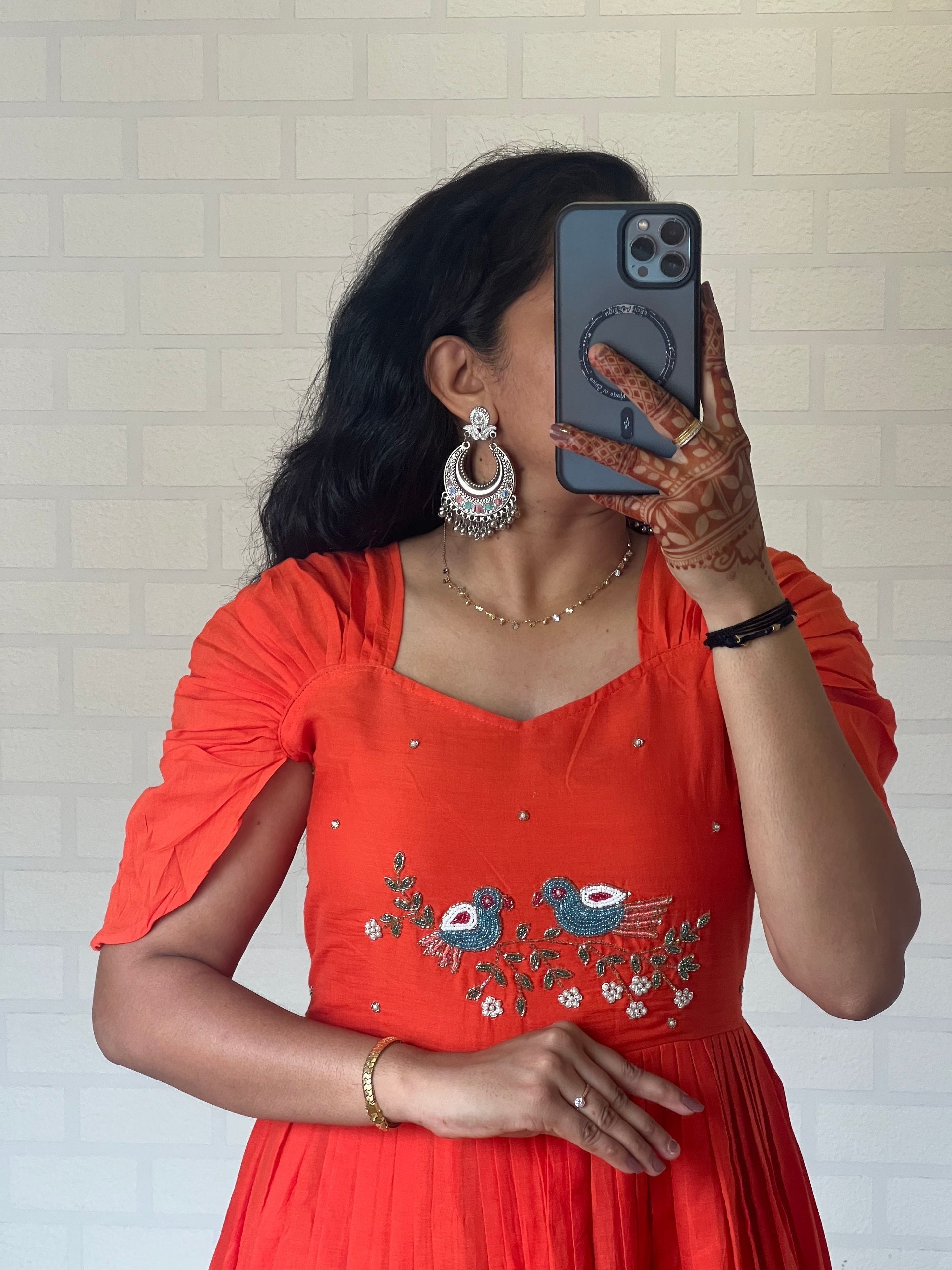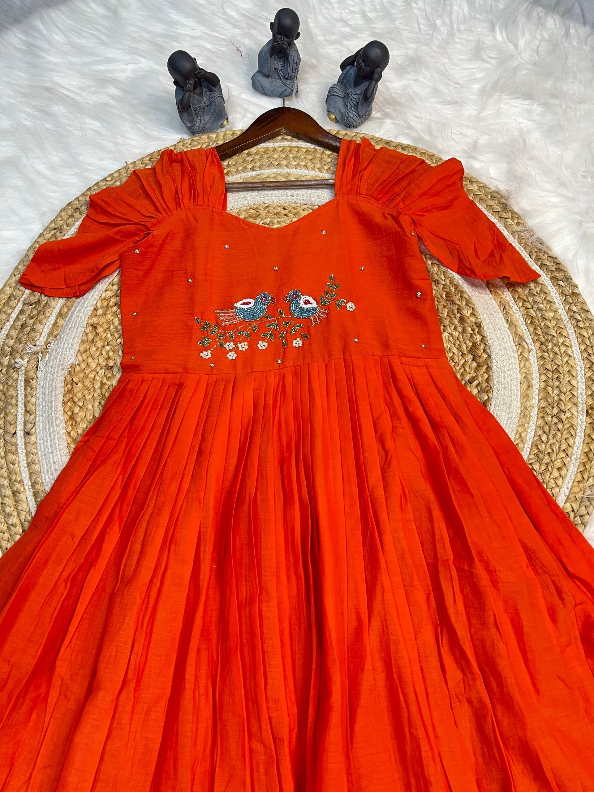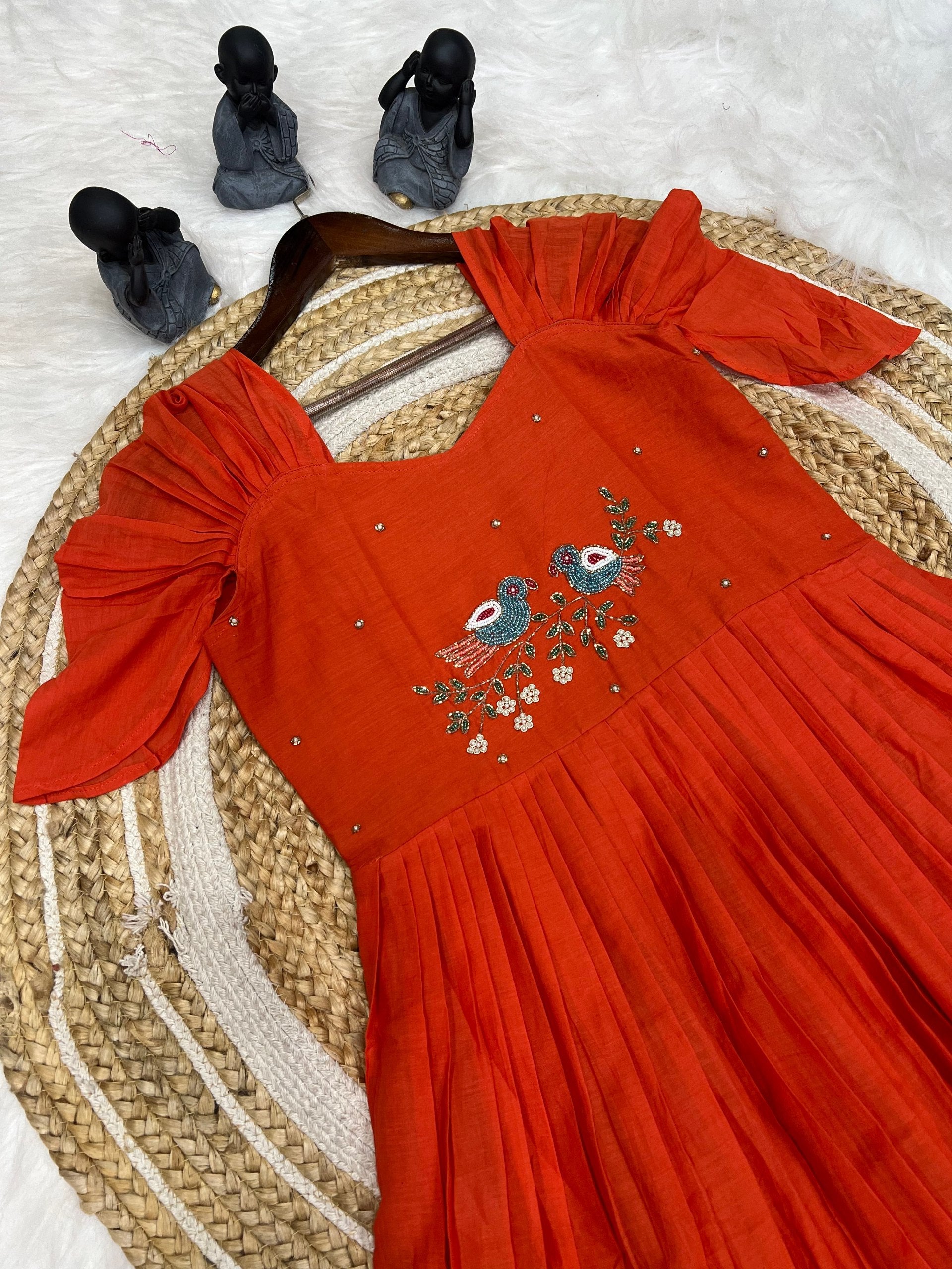 New Orange Color Pure Mul Cotton Hand Maggam work Kurti
