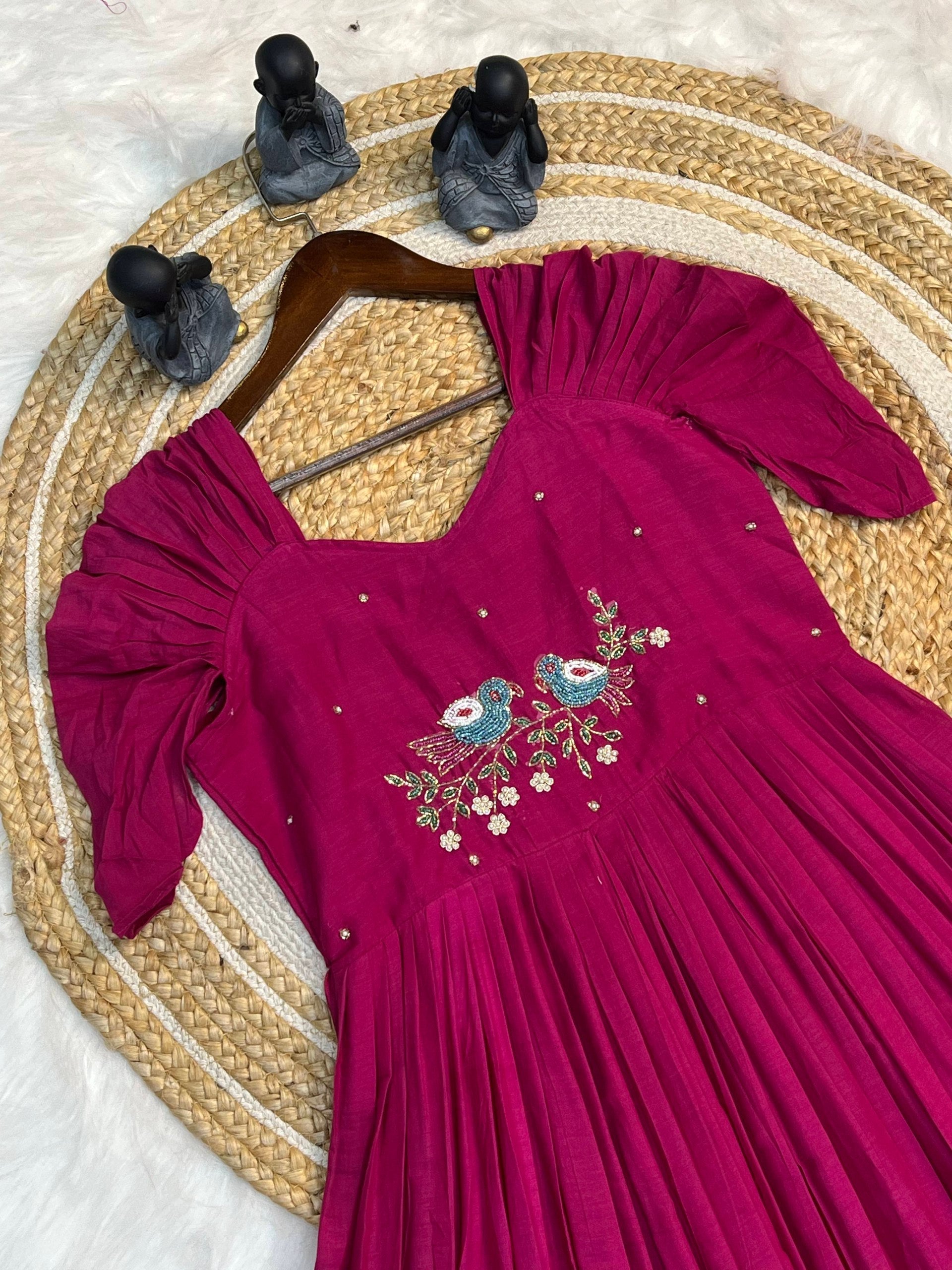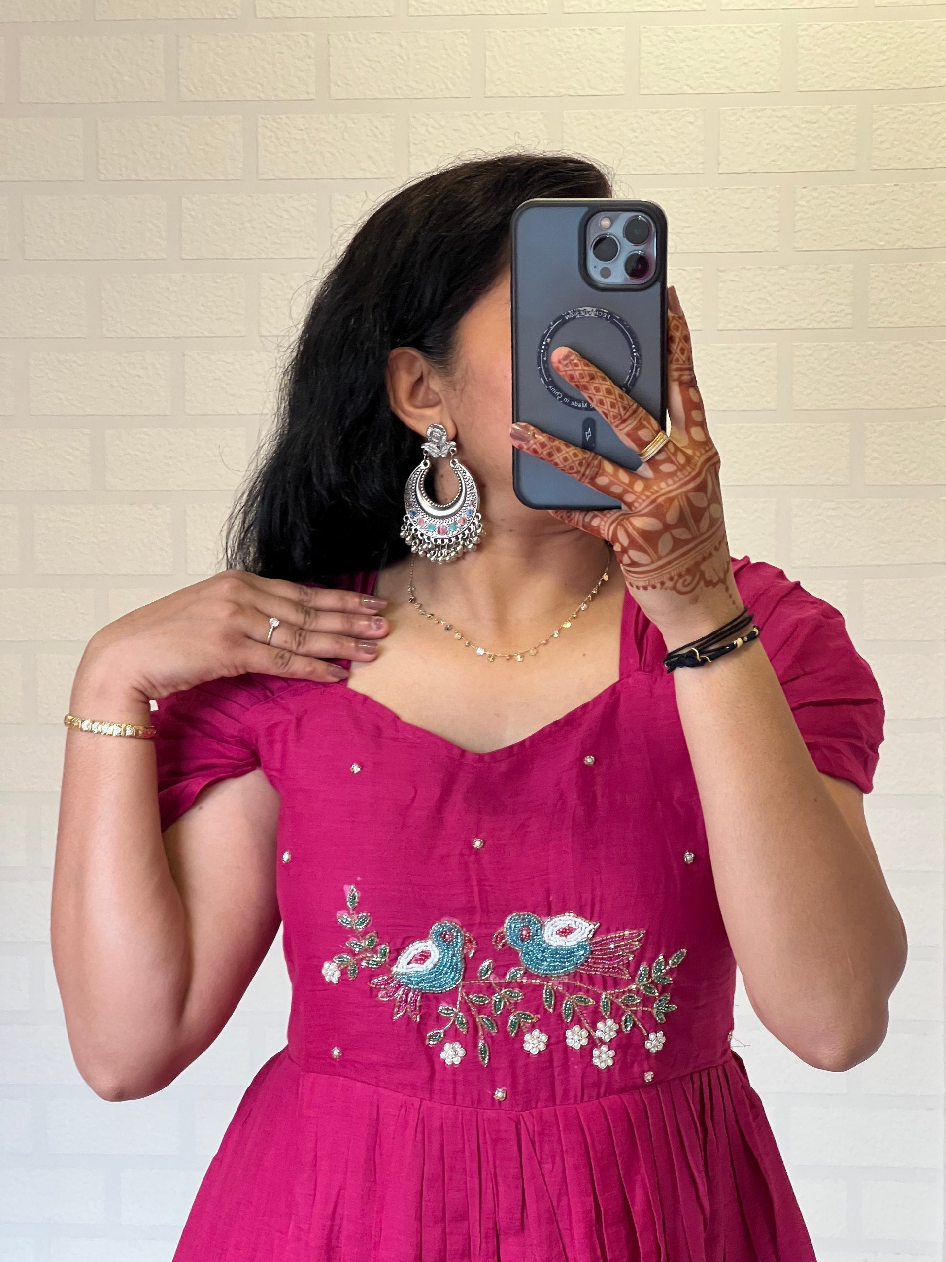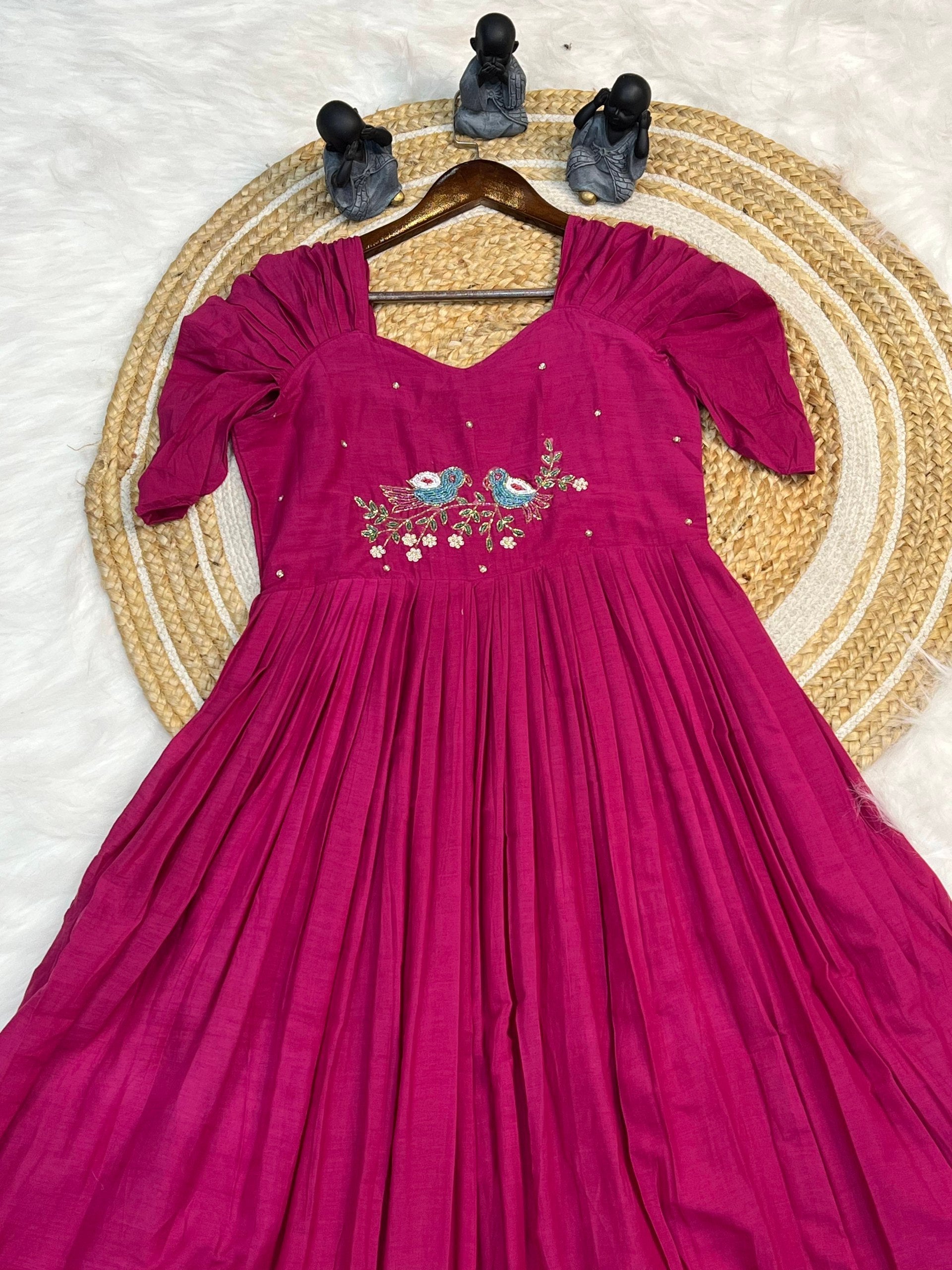 New Pink Color Pure Mul Cotton Hand Maggam work Kurti