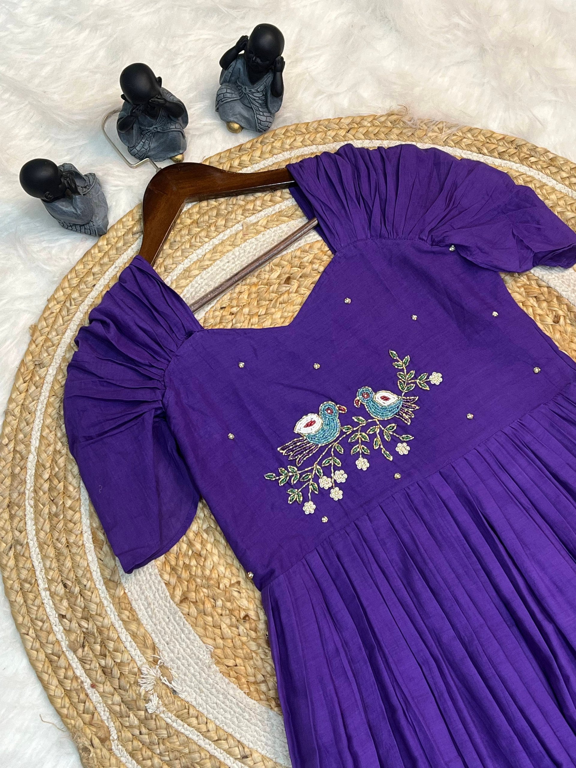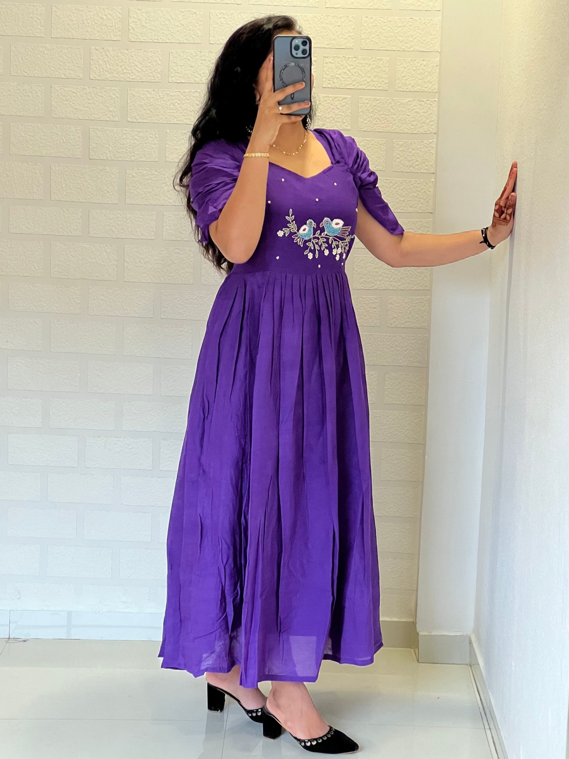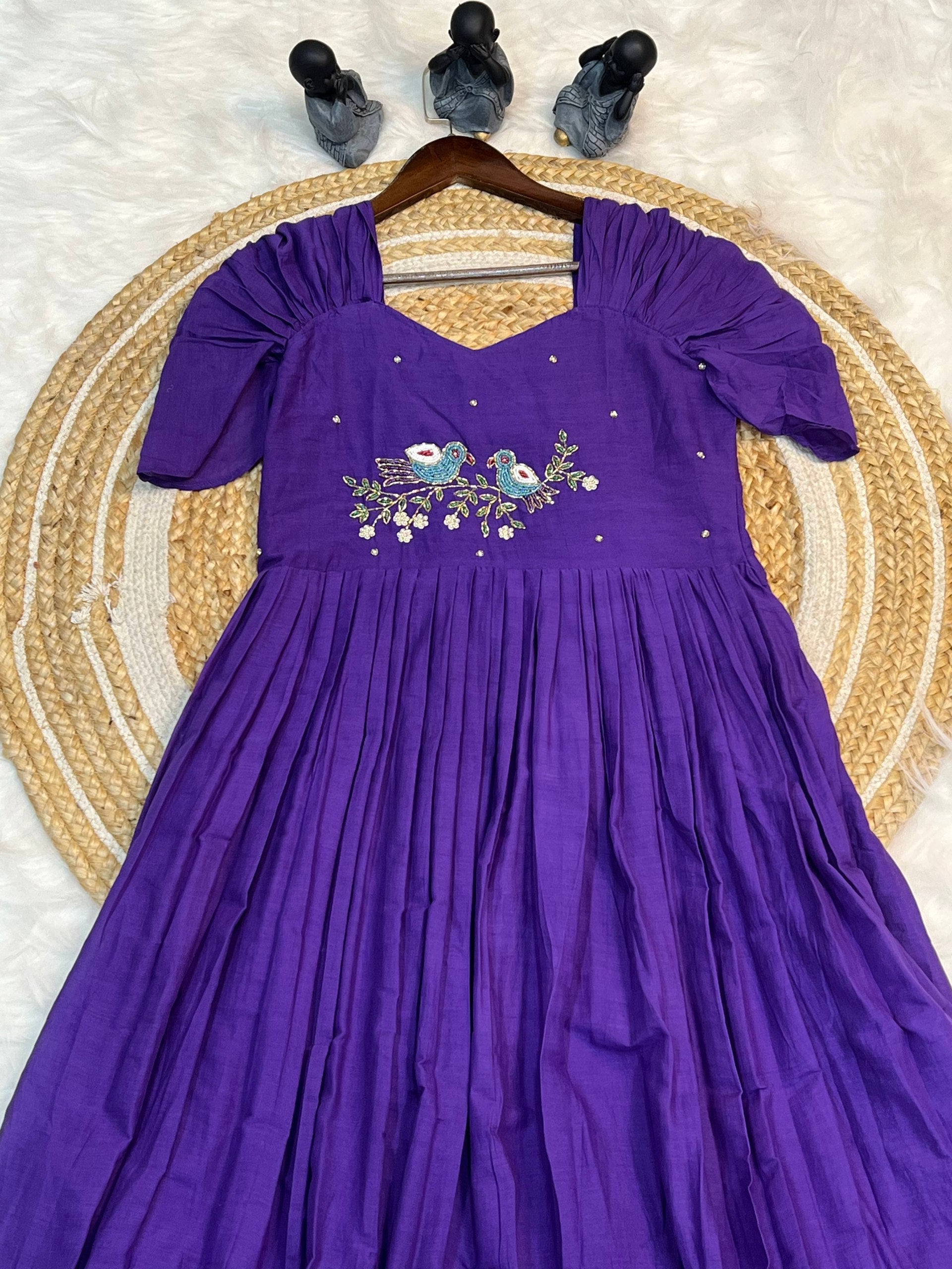 New Purple Color Pure Mul Cotton Hand Maggam work Kurti