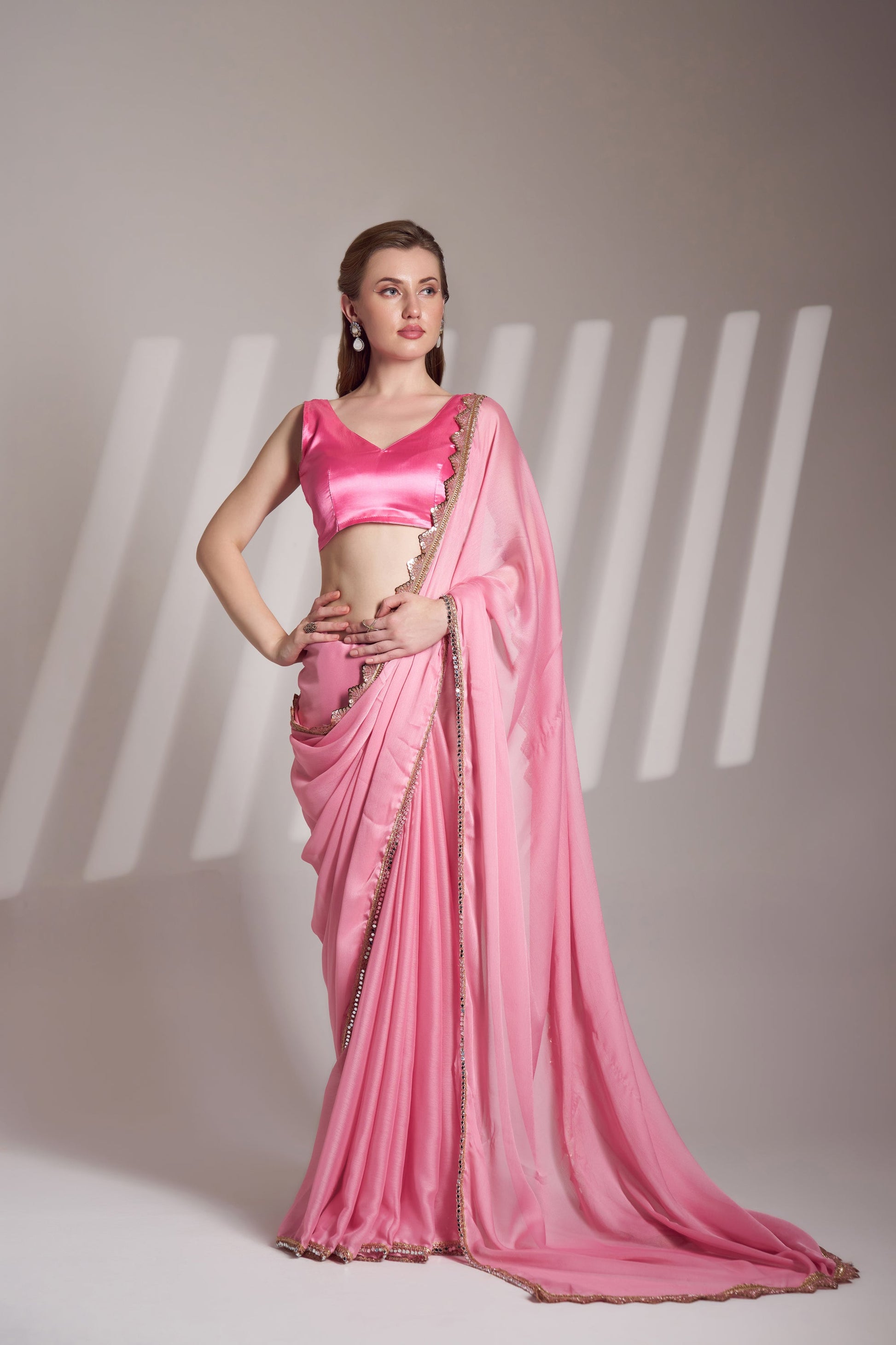 Pink Chiffon Saree with Designer Lace for Party Wear