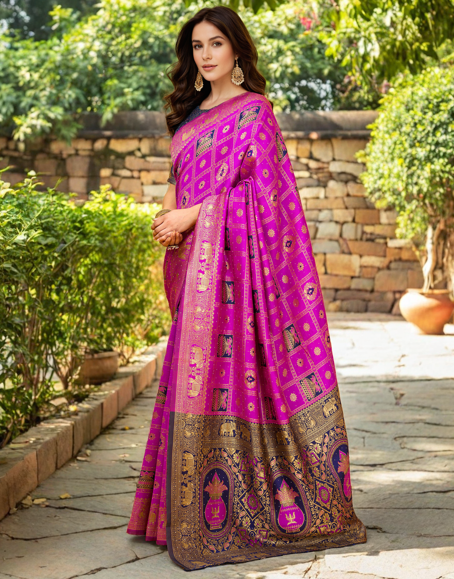 Pink Color Silk Weaving Work Paithani Designer Saree