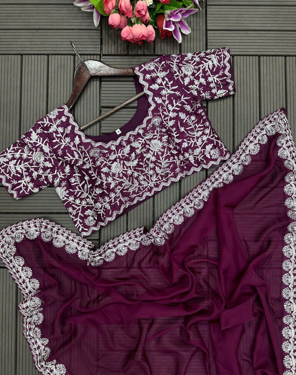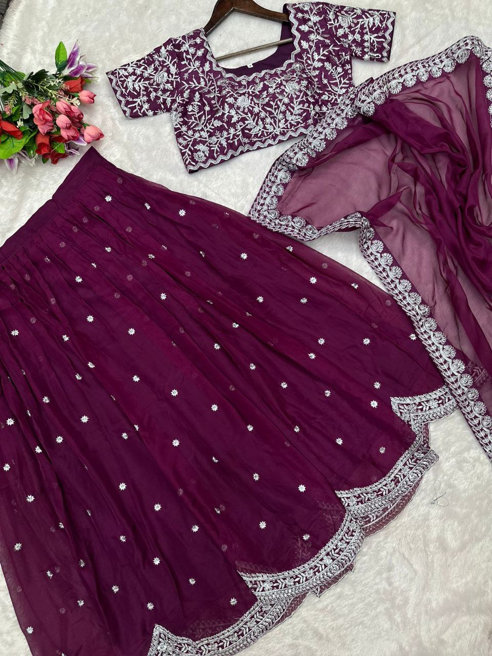 Purple Embroidered Apple Organza Lehenga Choli Set