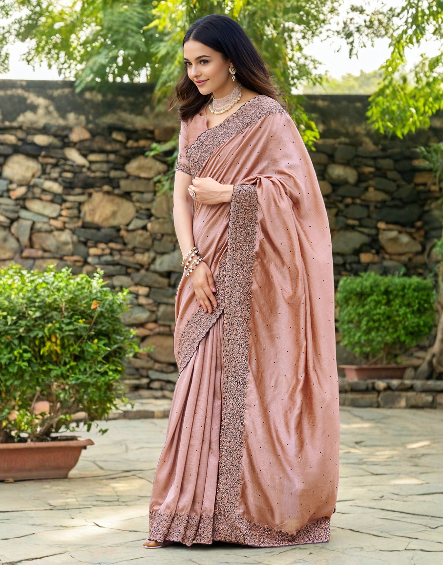 Rangoli Silk Siroski Work Party Wear Saree (Peach)