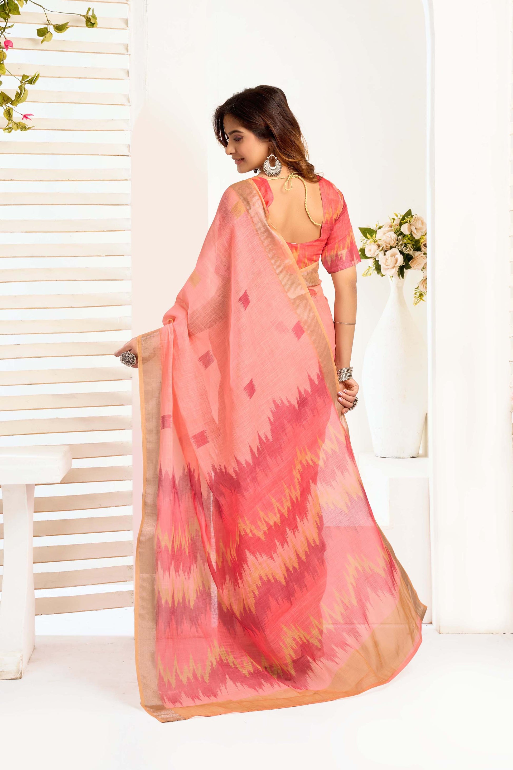 Ready-to-Wear Saree – Peach Linen with Pocket | Anarkalion