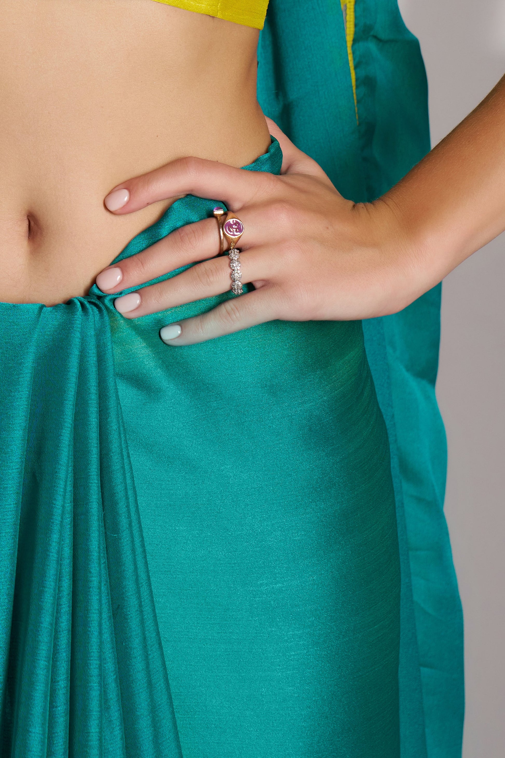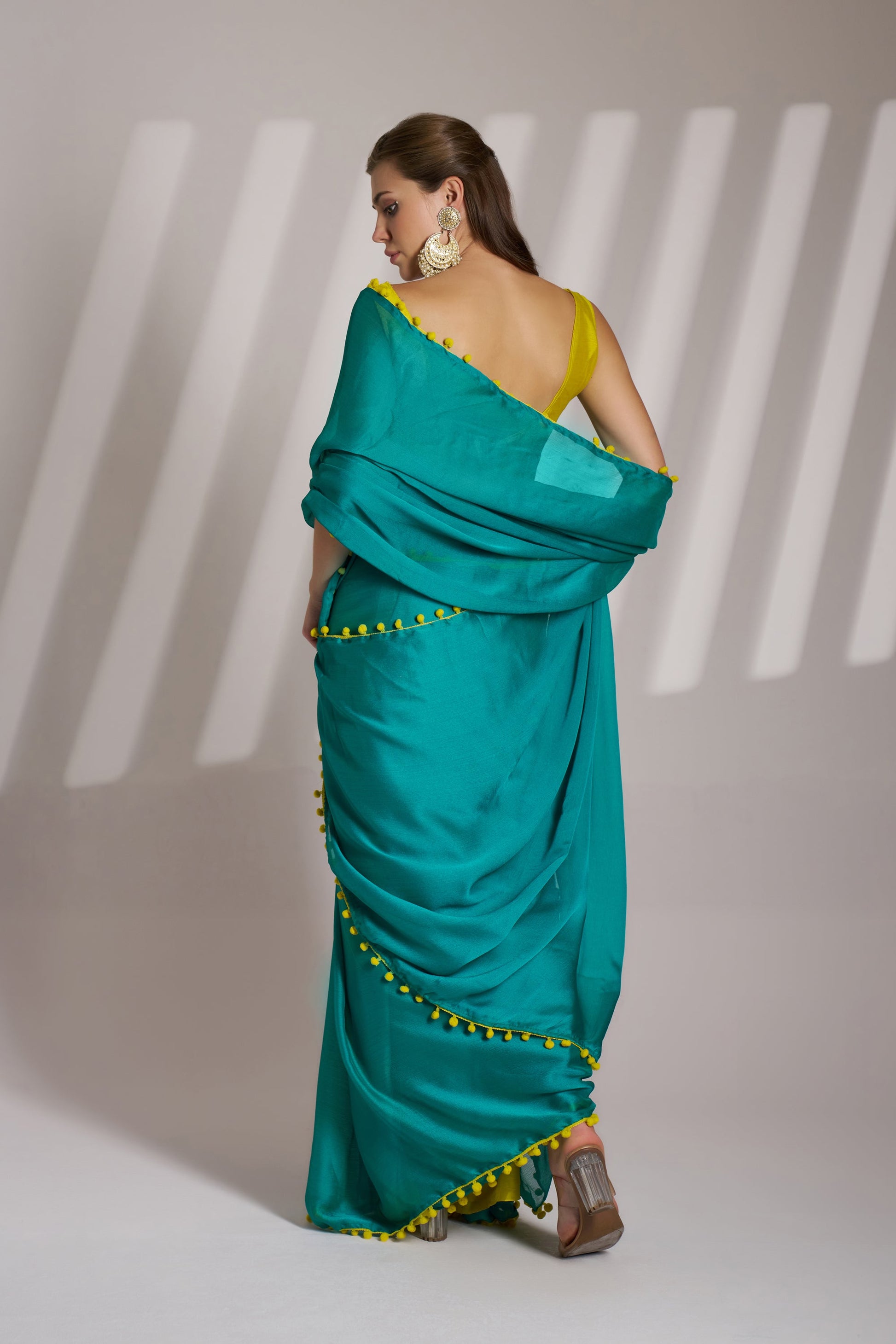 Sea Green color chiffon fabric saree with designer lace and unstitched blouse