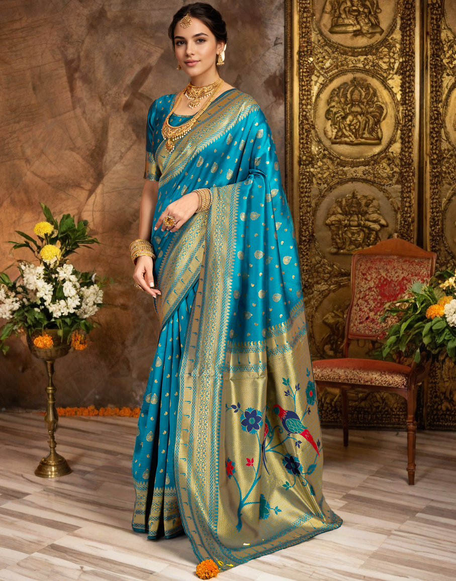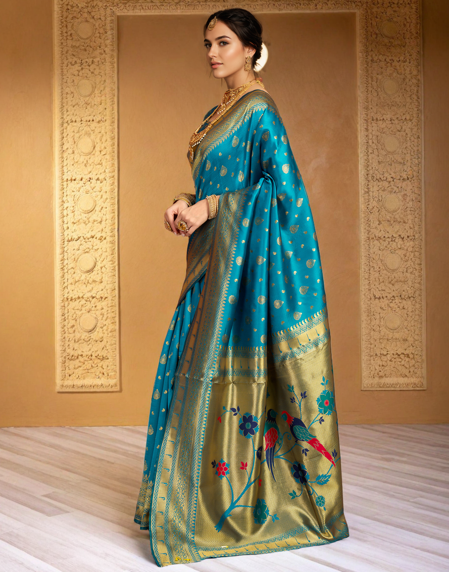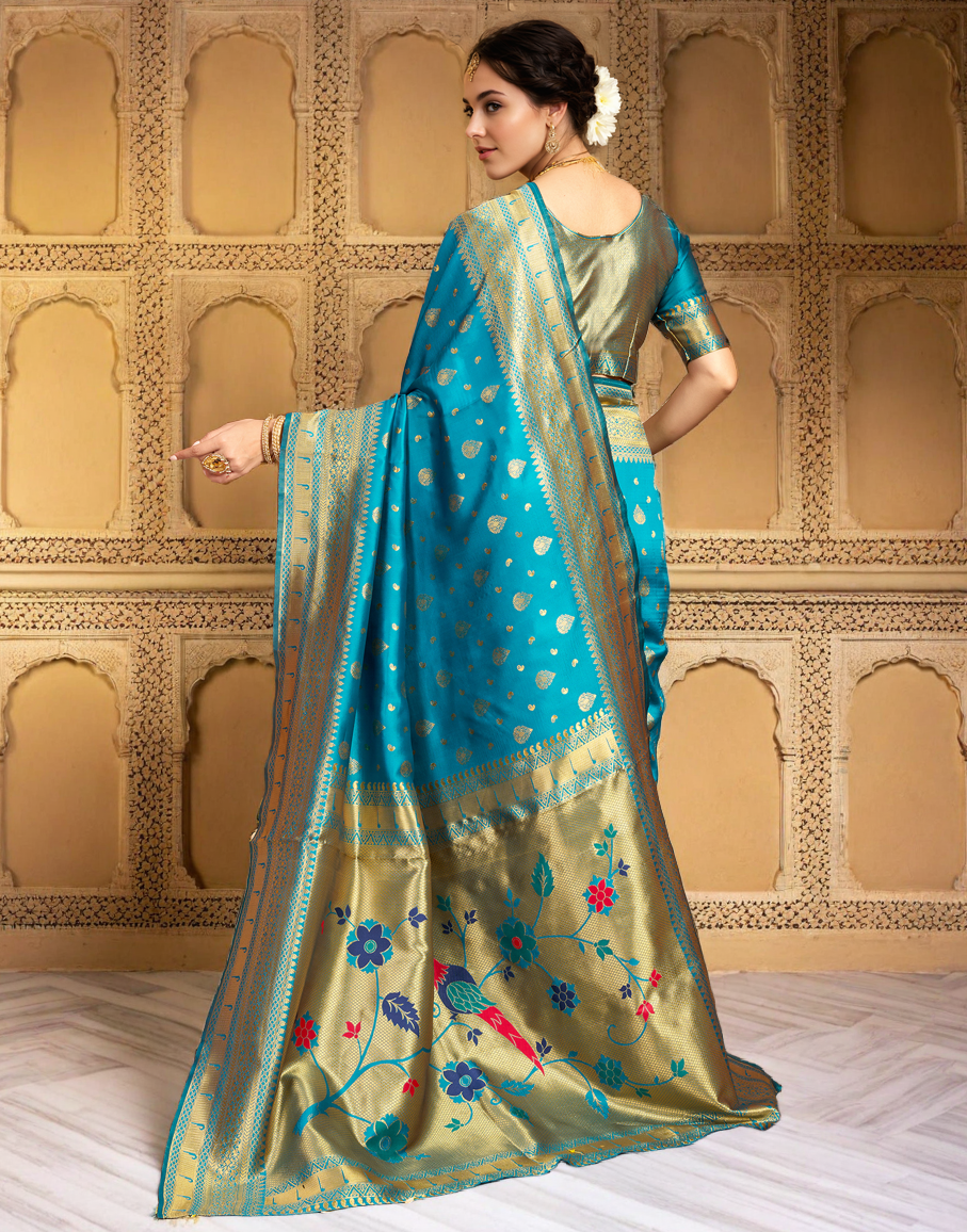 Turquoise Color Silk Weaving Paithani Work Designer Saree