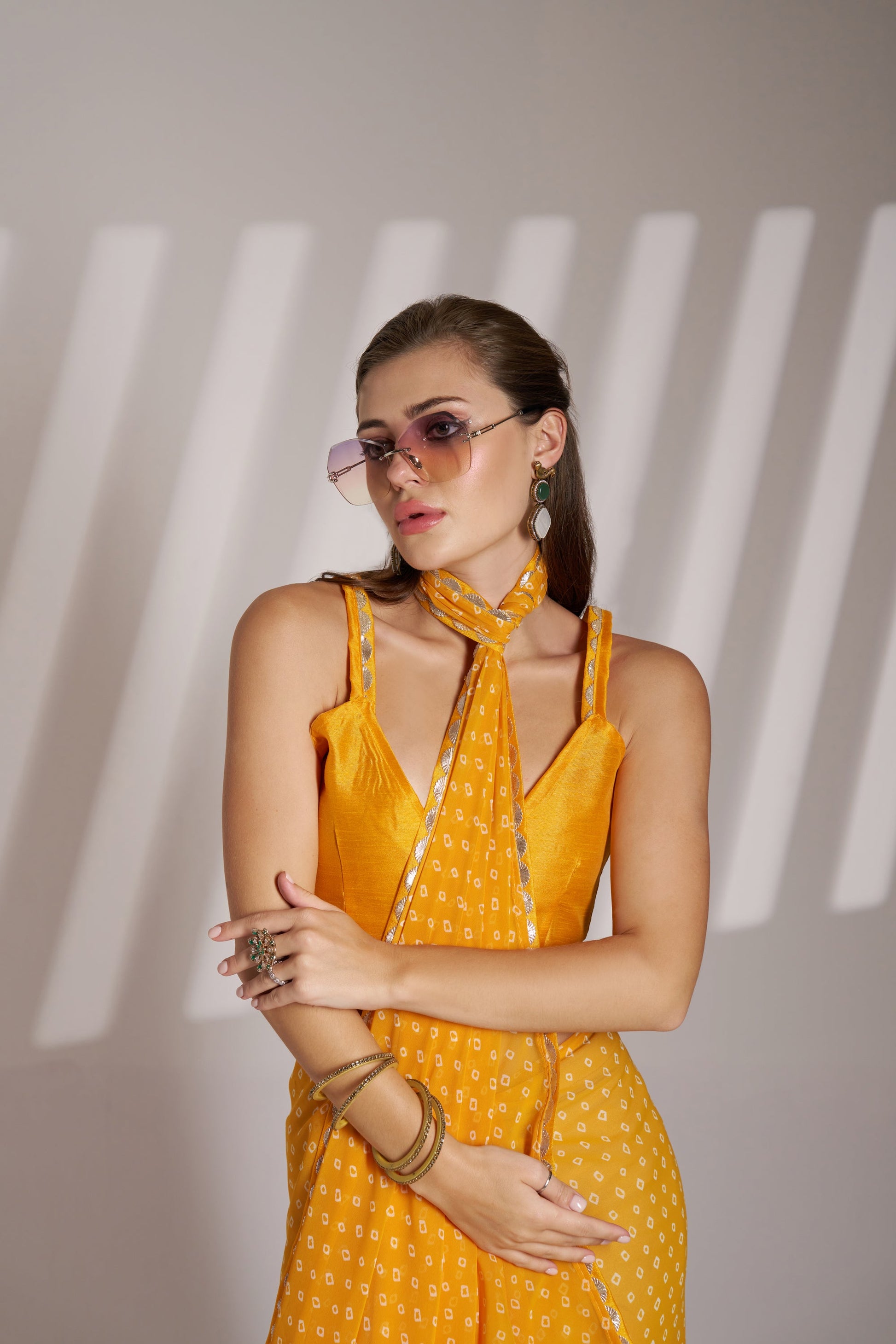 Yellow Georgette Laheriya Print Party Wear Saree with Fancy Lace
