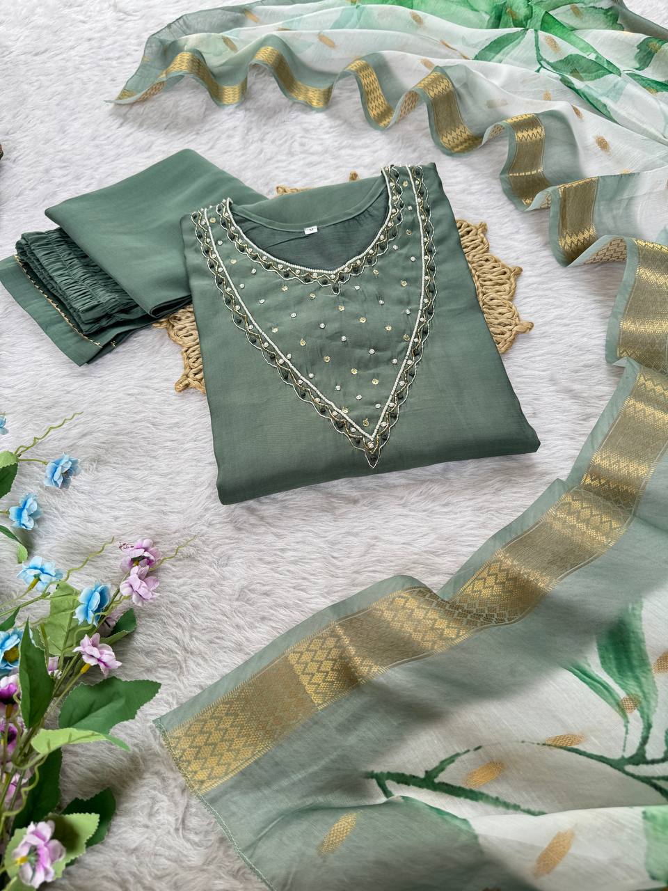 Rangoli Silk Green Color Party Wear Saree With Stitched Blouse